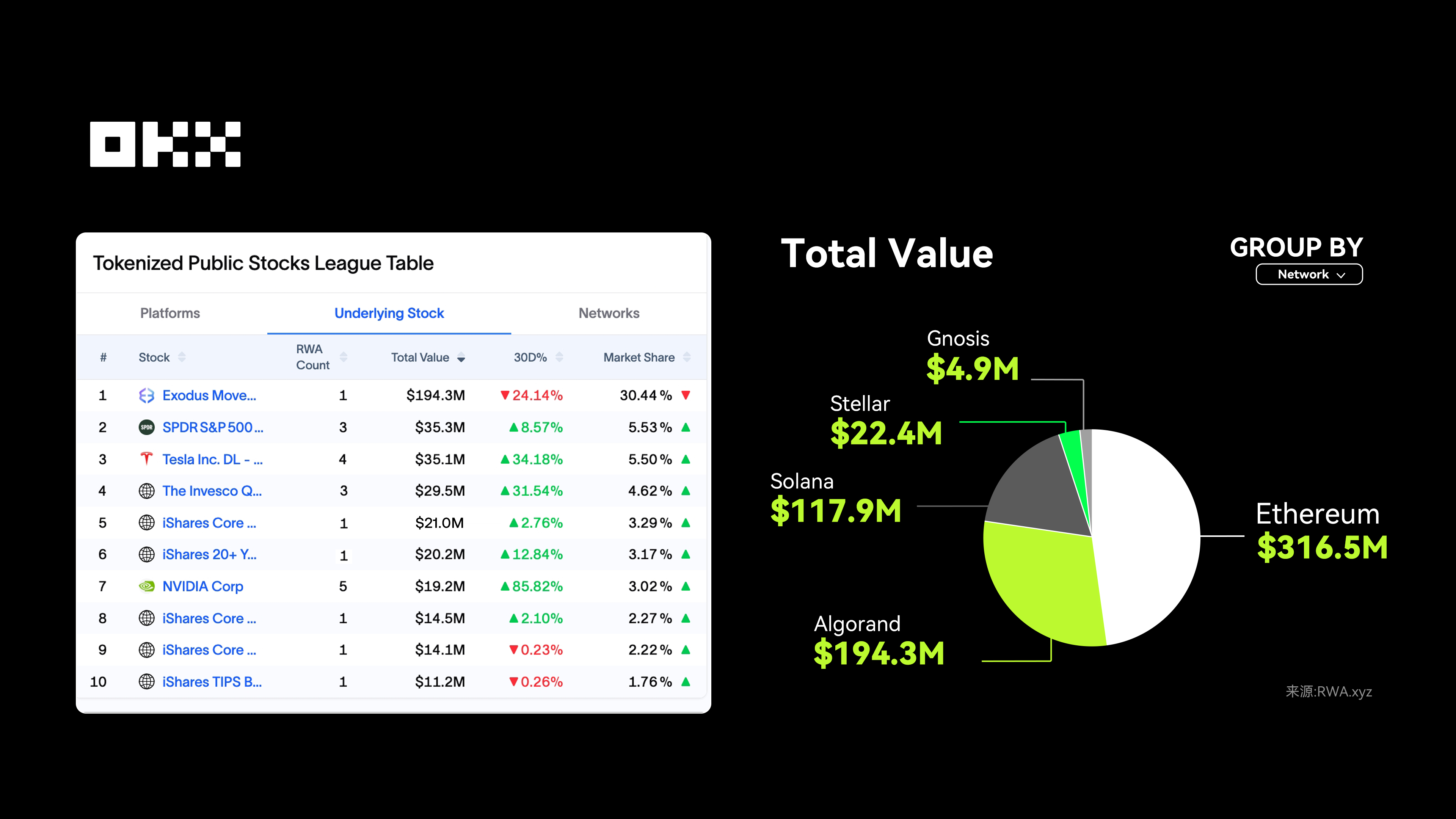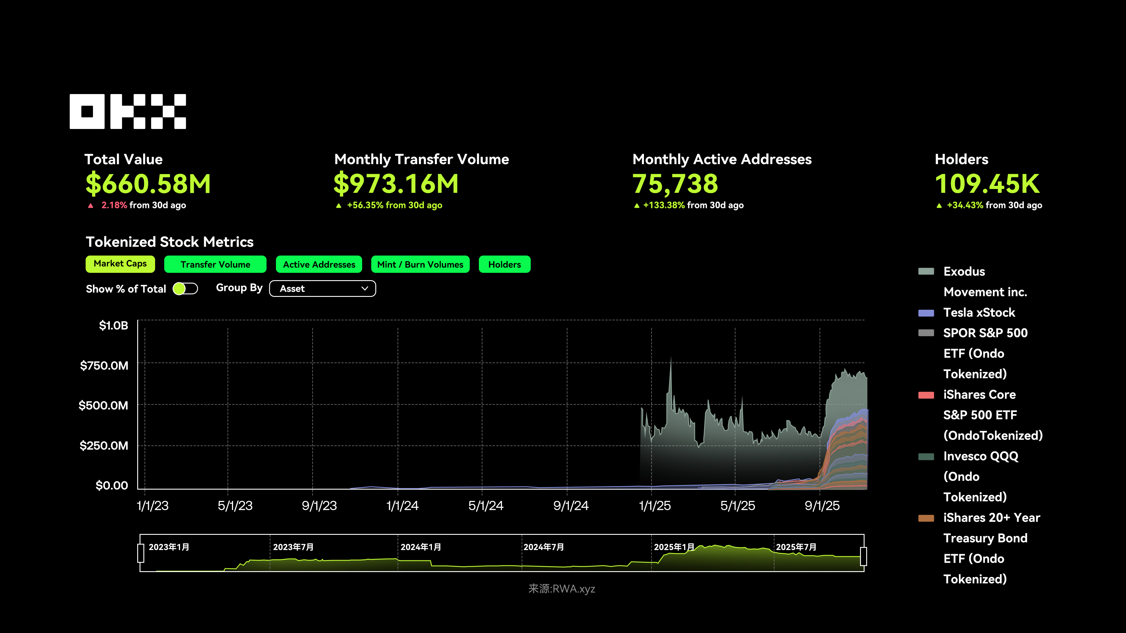 上市股票也在被代币化,尤其是科技股和ETF。Facebook、苹果、特斯拉的股票,现在都可以按份额拆成代币,让普通人也能用几百块参与美股投资,不用开境外账户,也不用支付高昂的交易佣金。