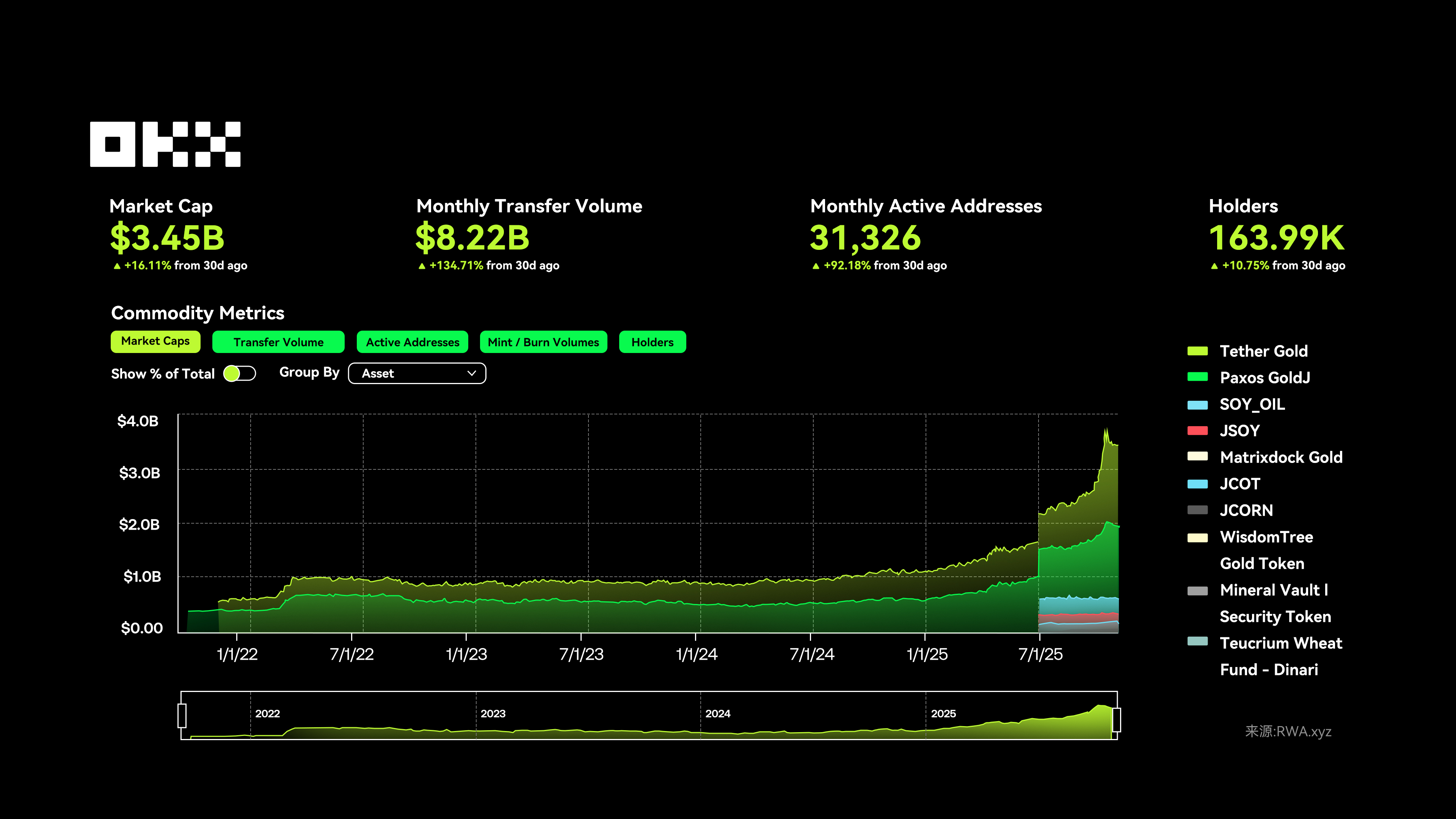 黄金呢?代币化黄金已经占到全球黄金交易量的近10%。你不再需要买金条、开保险箱,只需要在钱包里点一下,就拥有了“数字金砖”。